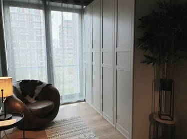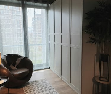 Voor een nieuw opgeleverd appartement in Amsterdam ontwierp ik het interieur met oog voor efficiëntie en comfort. Omdat de woning compact is en bedoeld voor één persoon, lag de uitdaging in het optimaal benutten van de beperkte ruimte. Door slimme keuzes in indeling, meubels en kleurgebruik is er toch een sfeervol en praktisch thuis ontstaan.